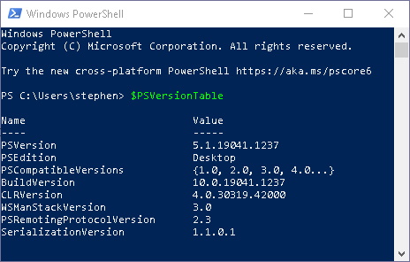 To check your version of PowerShell, click on the top Windows PowerShell icon, and next to the prompt, type the command shown below: